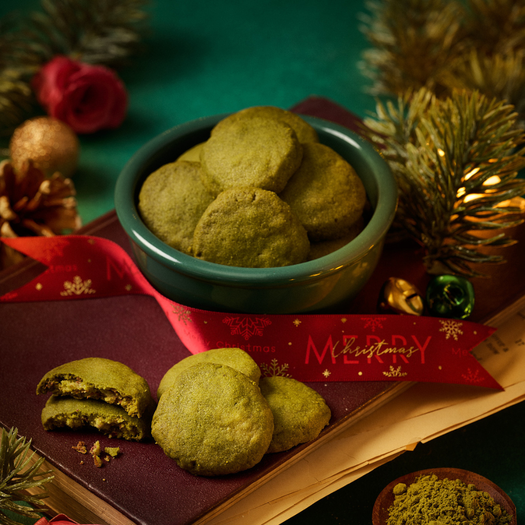 Handcrafted to celebrate the festive spirit, these Christmas cookies offer a floral, green tea-infused touch that’s both refreshing and comforting.