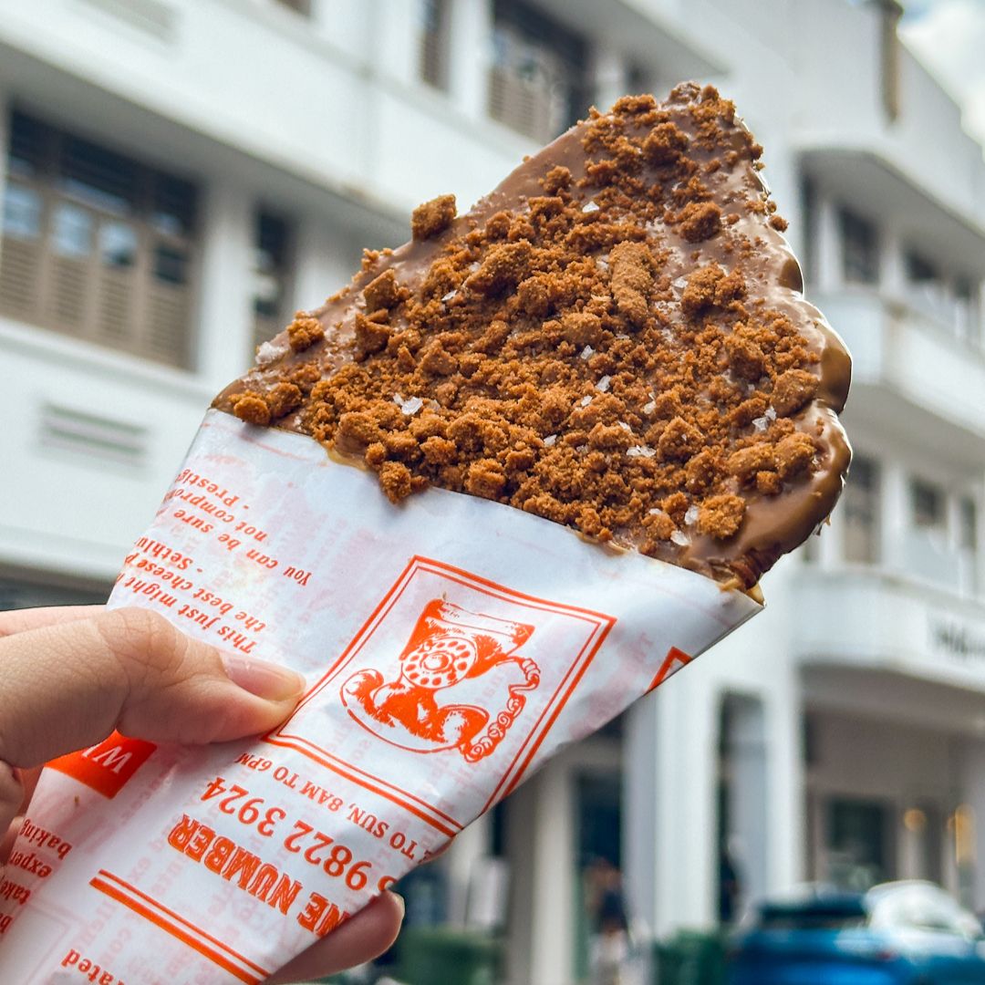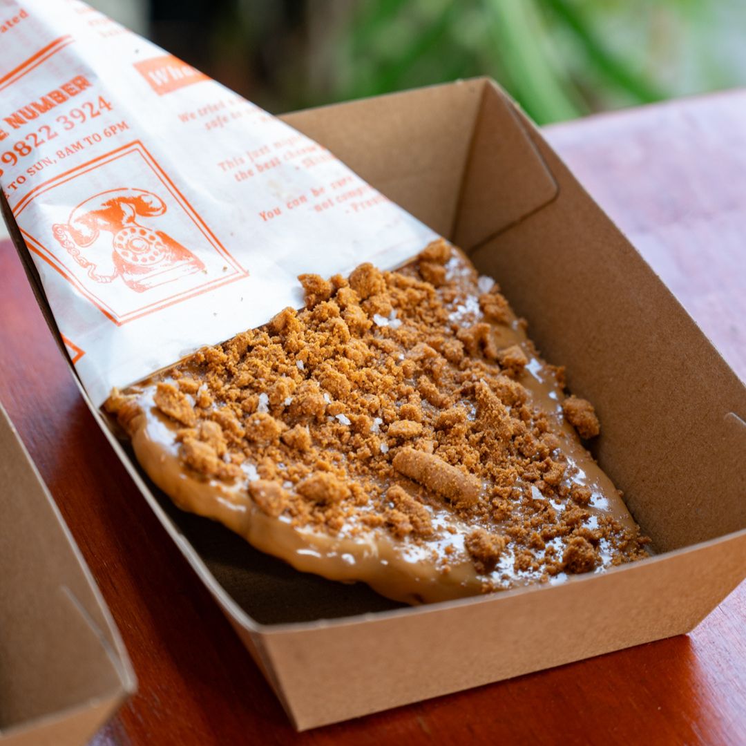 Bite into a crisp, flaky exterior, dipped in a generous layer of creamy Lotus Biscoff spread and sprinkled with crushed Speculoos crumbs and a touch of Fleur de sel for a harmonious blend of textures and flavors.